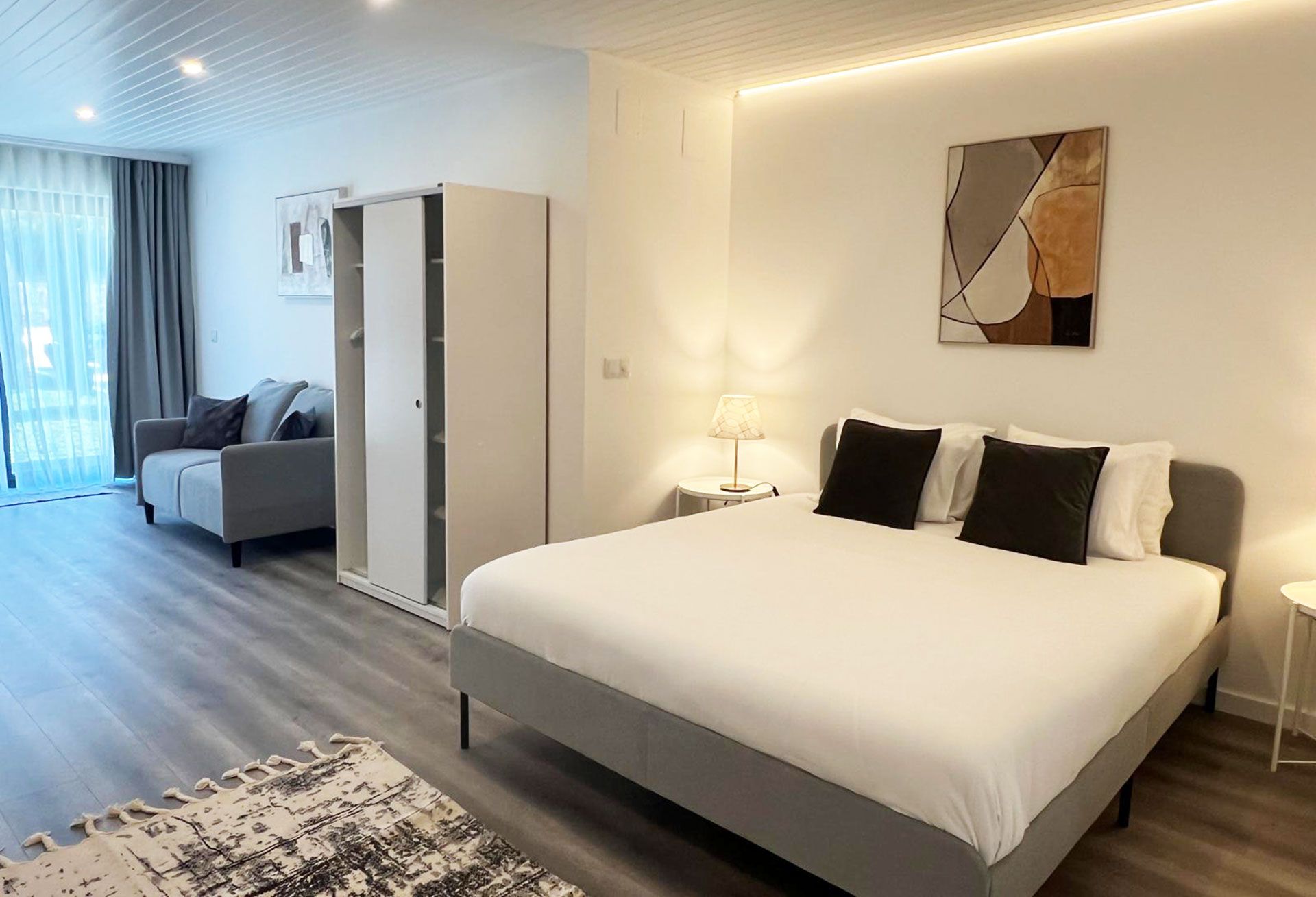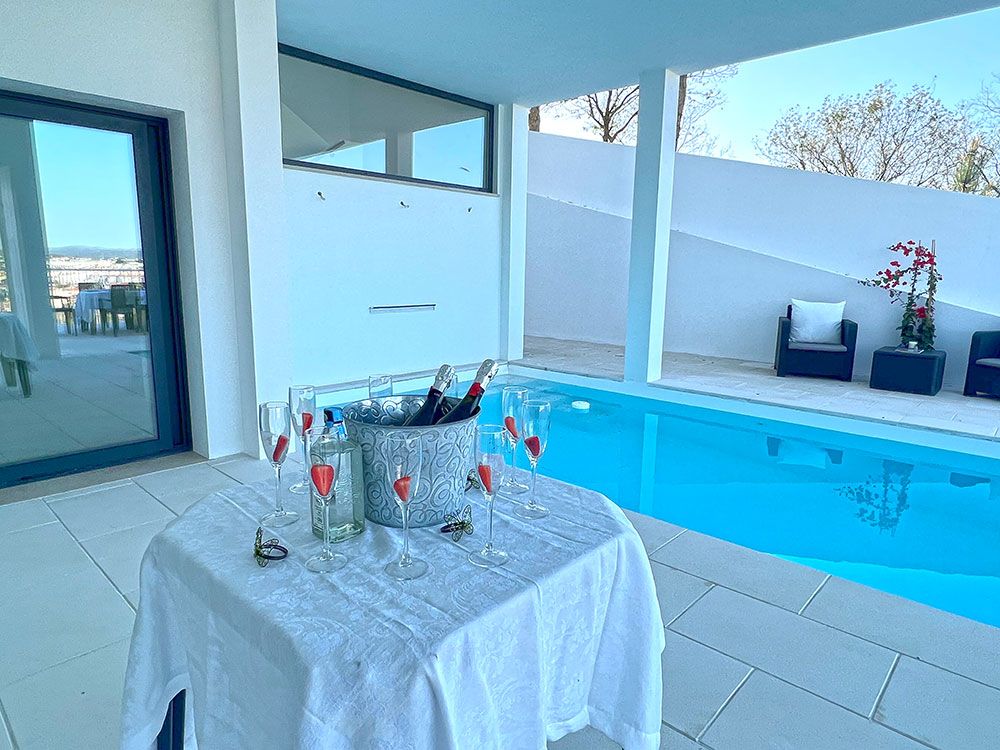 Accommodation in an apartment with contemporary decoration, with outdoor spaces and gardens for Sun Lounge, with a magnificent view over the the pool and garden (up to 2 people and 1 child up to 5 years old).